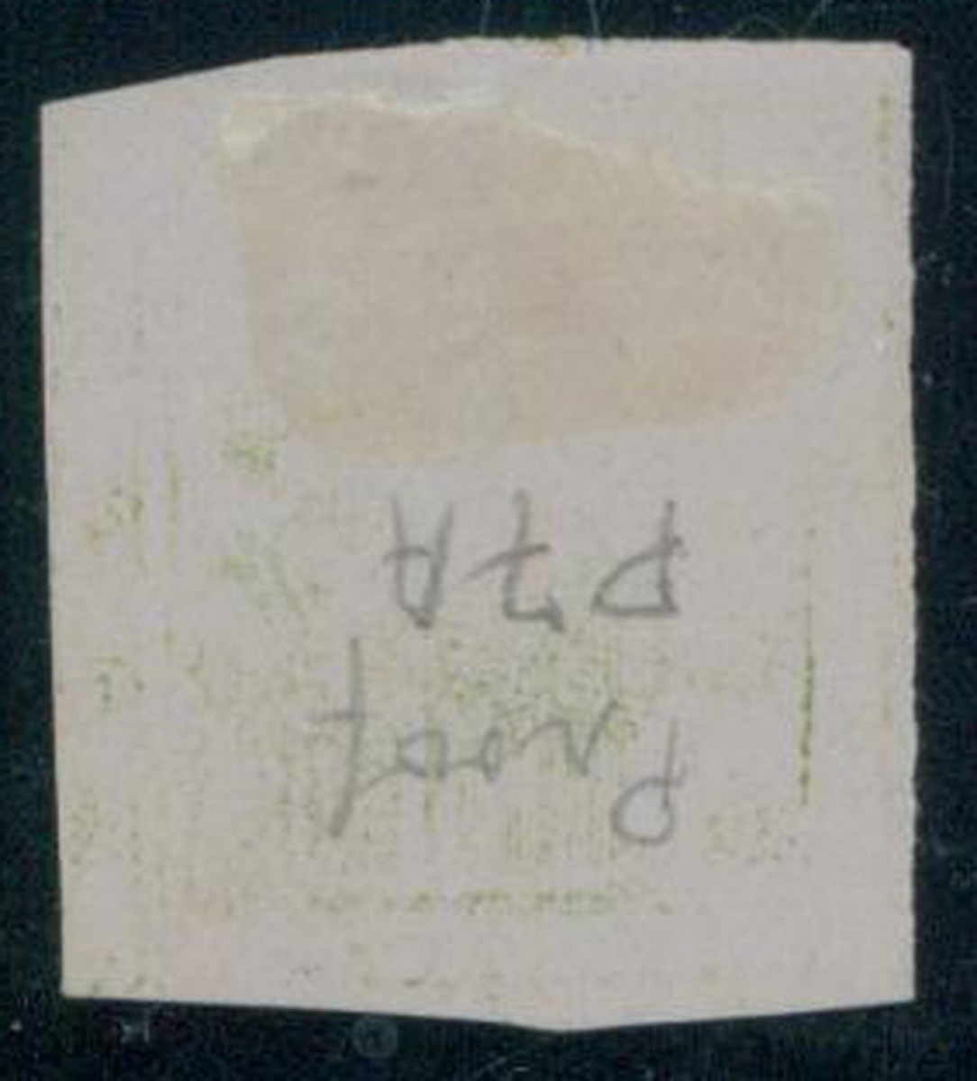 20c. bright green on white paper, without gum, generous but irregular margins. Pencil “Proof P7A” on the reverse