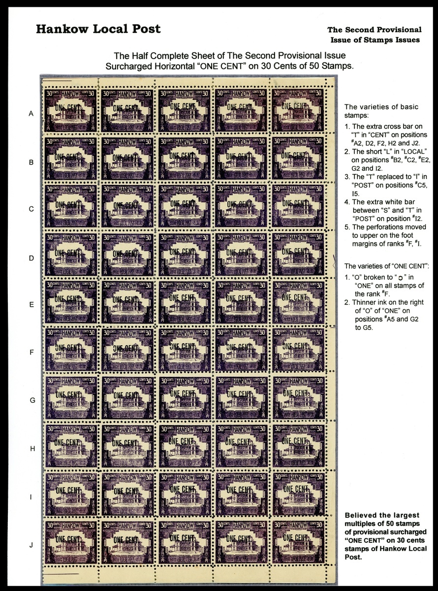 1c. on 30c. slate-violet in a block of fifty from the right hand of the stone II sheet, with full original gum. The block also shows some setting varieties of the surcharge including broken "O" in row 6; indicating that the surcharge was printed in vertical strips of ten. A fine and delightful setting block which is thought to be the largest extant.