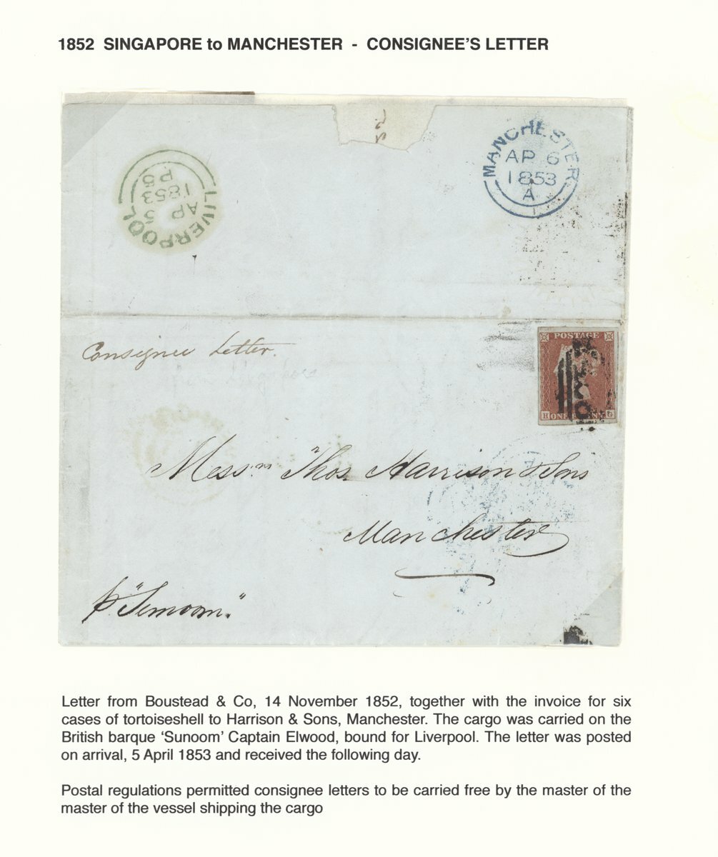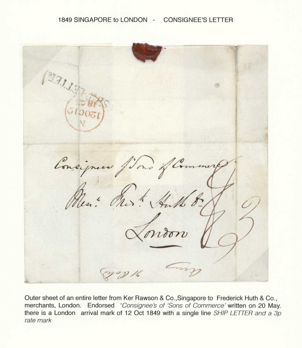 1849 (May) "Consignee of Sons of Commerce" entire to London, rated "8" (deleted) and "3" and showing, on reverse, arrival "