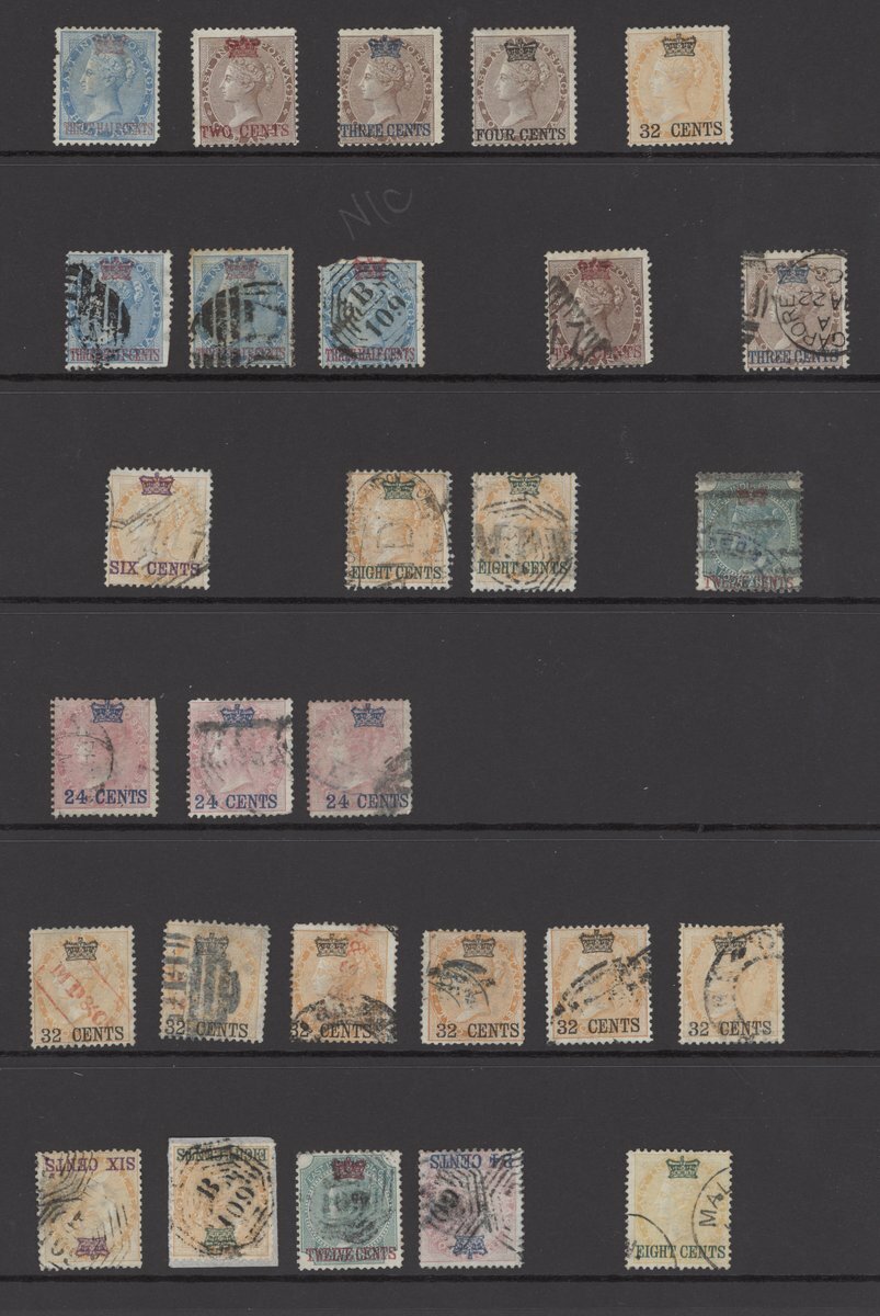 1½c. on ½a., 2c. on 1a., 3c. on 1a., 4c. on 1a. and 32c. on 2a., unused, 1½c. on ½a. (3), 2a. on 1a., 3c. on 1a., 6c. on 2a. (2), 8c. on 2a. (4), 12c. on 4a. (2), 24c. on 8a. (4) and 32c. on 2a. (6), variously cancelled with portions of duplex or a couple with portions of datestamps; a couple of the 1½a. on ½a. with defects, otherwise generally sound to fine. S.G. 1-9, £4,500+