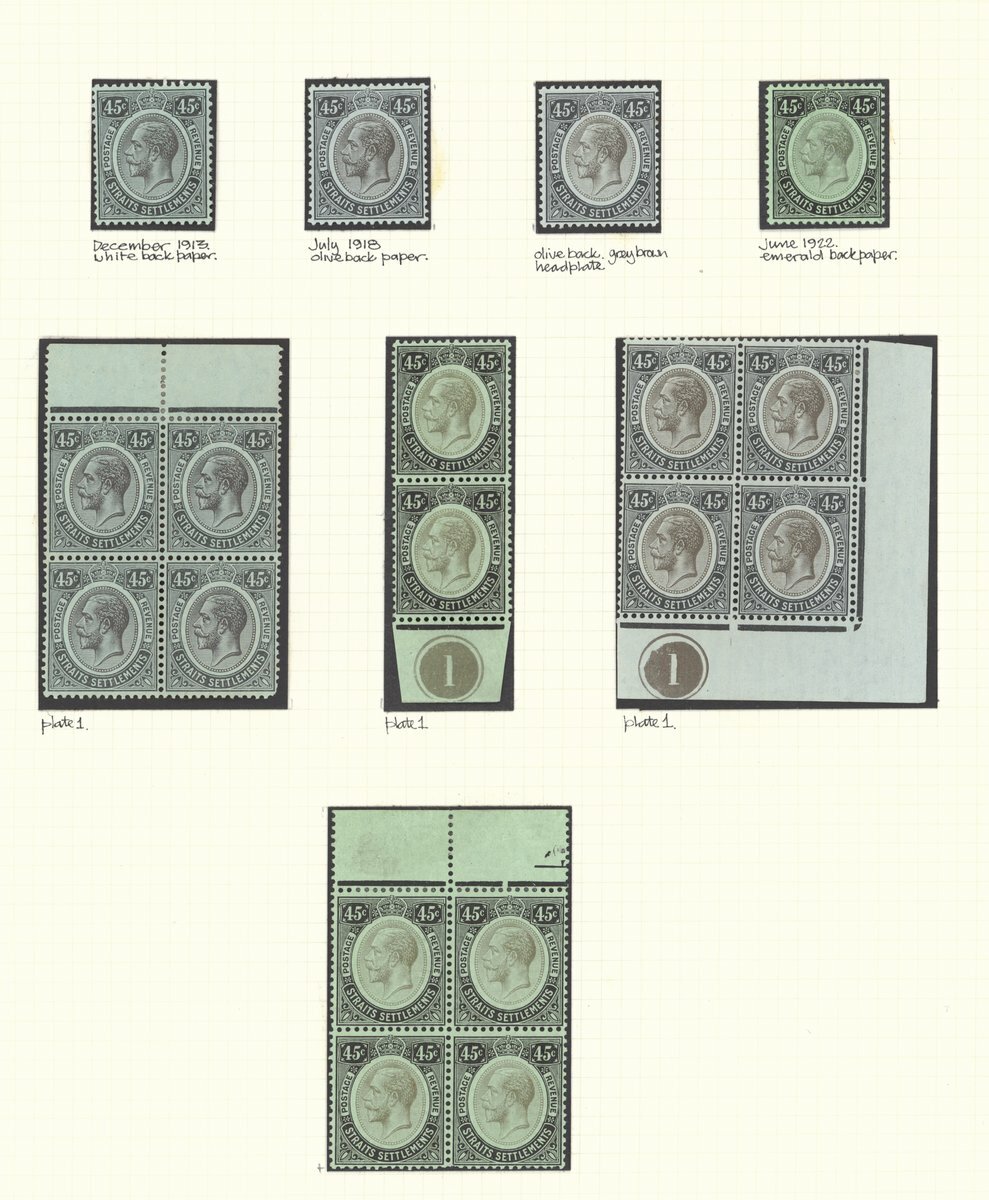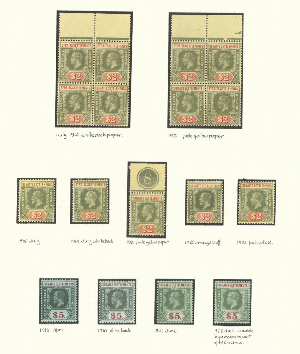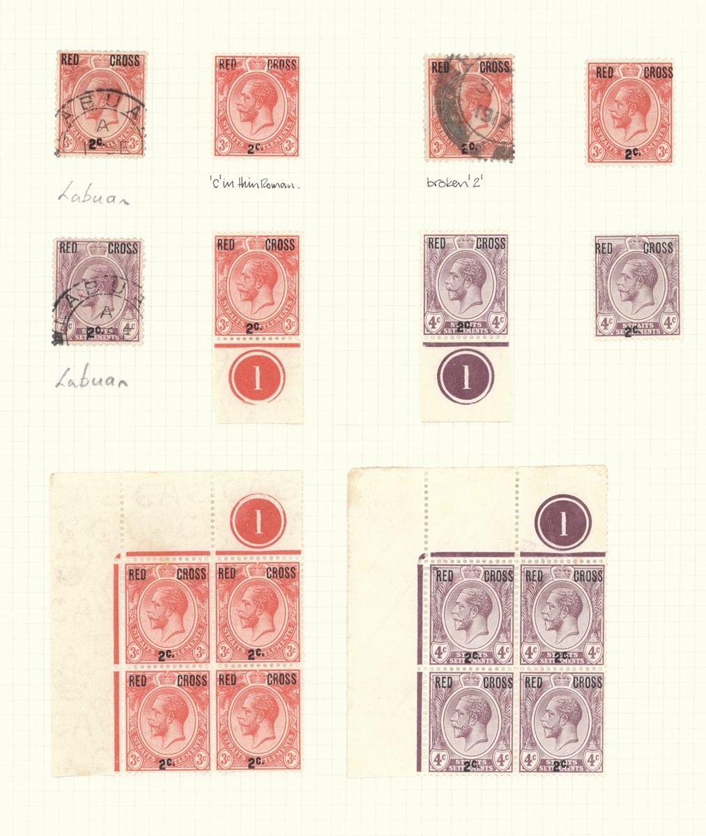 1912-23 MCA 1c. to $5 (4) with a good selection of shades, papers, plate numbers with seventeen blocks of four to $2 and some singles, other blocks of four to $2 (3) or larger, Die II 50c. and $5, and 1917 Red Cross selection, mint, the majority neatly mounted and written-up on pages, also 10c. and $5 mint, 10c., 50c. (2), $1 (2) and $5 (2) showing partial double impressions; generally fine