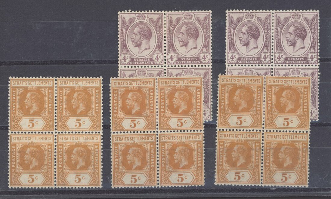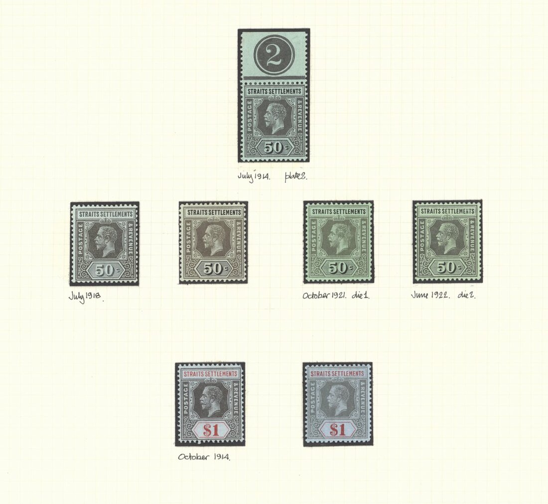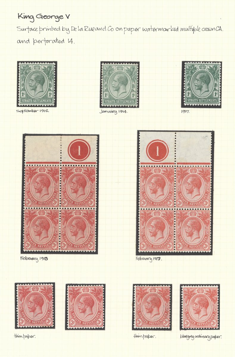 1912-23 MCA 1c. to $5 (4) with a good selection of shades, papers, plate numbers with seventeen blocks of four to $2 and some singles, other blocks of four to $2 (3) or larger, Die II 50c. and $5, and 1917 Red Cross selection, mint, the majority neatly mounted and written-up on pages, also 10c. and $5 mint, 10c., 50c. (2), $1 (2) and $5 (2) showing partial double impressions; generally fine