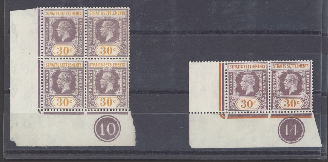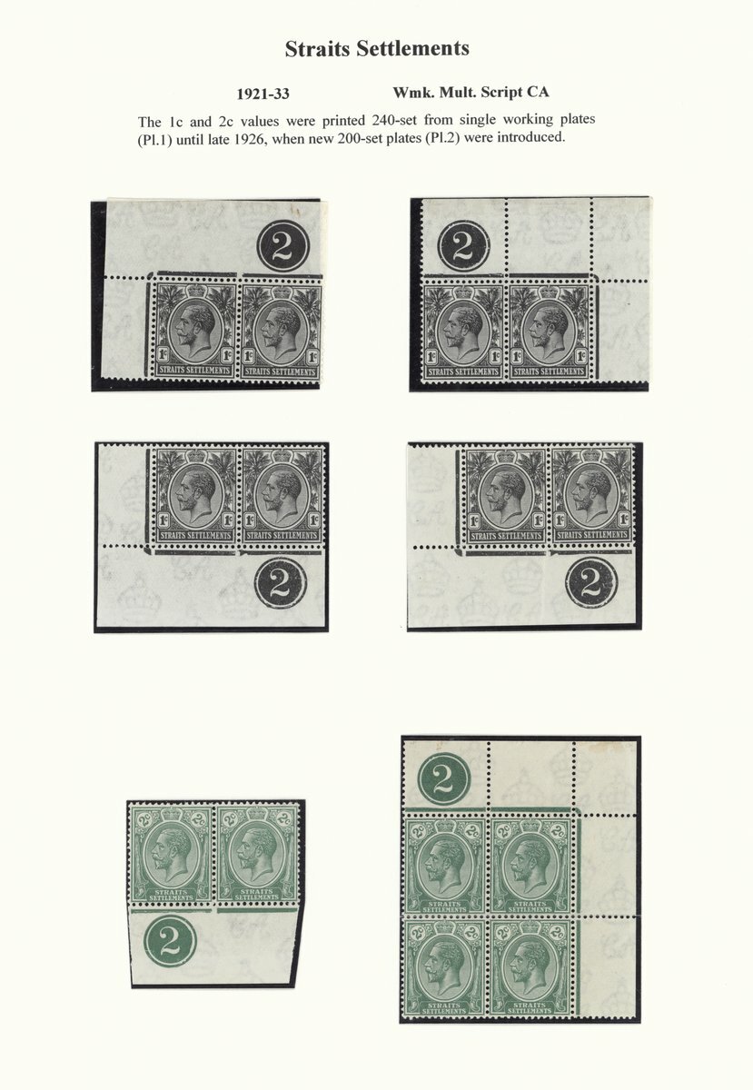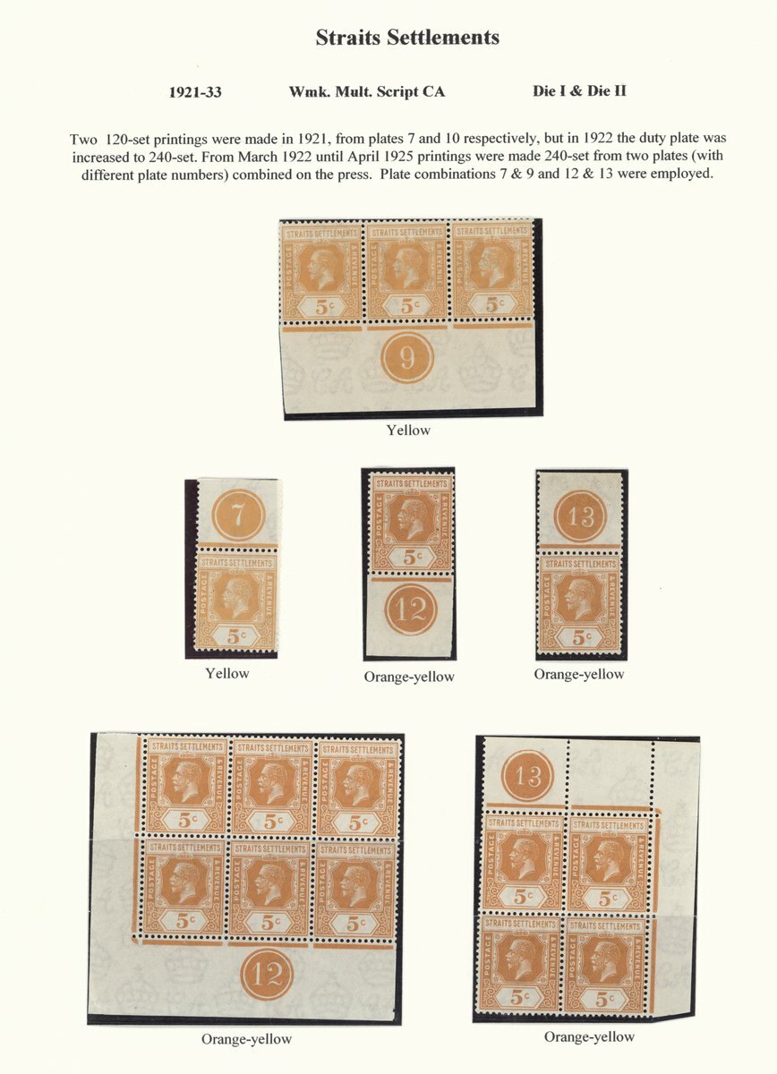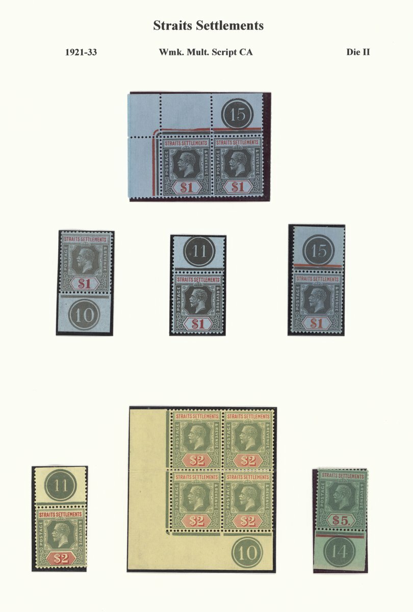 1921-33 Script 1c. to $5 collection of plate numbers mostly neatly mounted and written-up on pages, a good range of numbers and comprising singles (52), pairs (33), blocks of four (24) and a few larger up to twenty, mint and generally fine. A lovely lot for the specialist