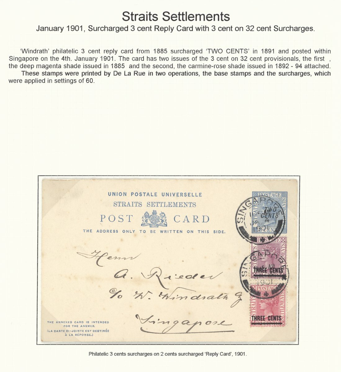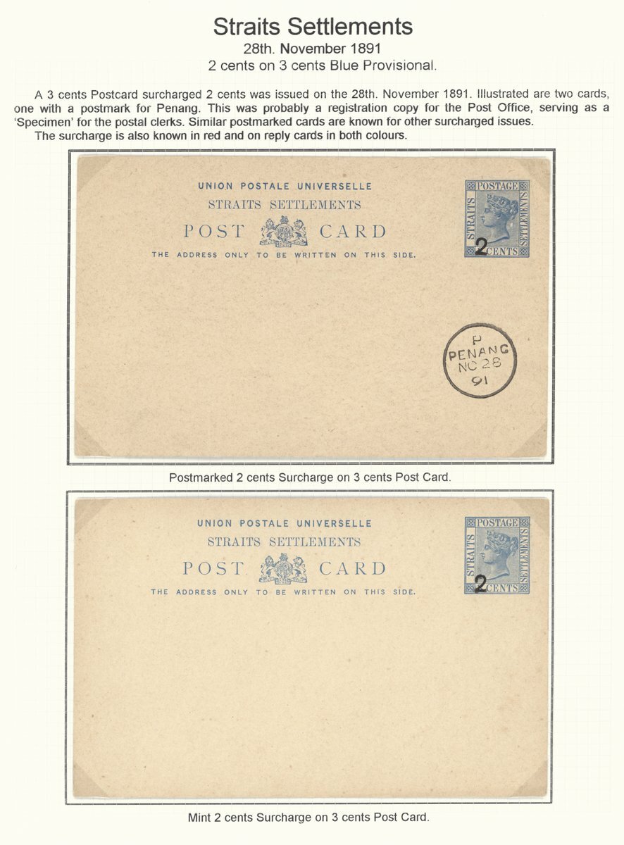 A collection comprising 1879 4c. on 5c., 1884 3c. on 4c., 1891 "2" on 3c. (2, one with Penang datestamp though unaddressed) and 1891 "