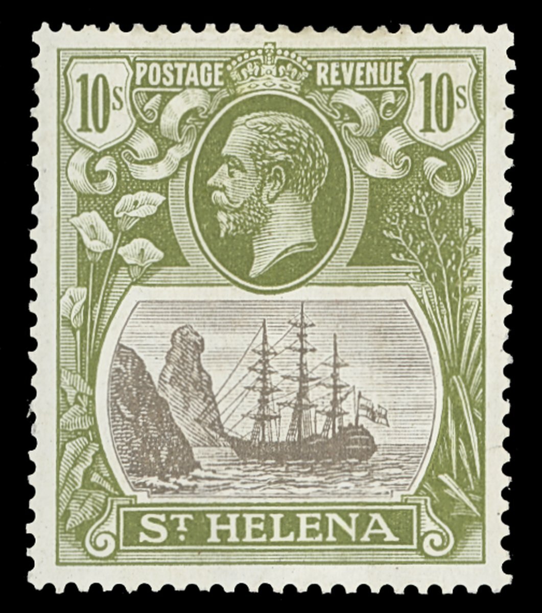 10/- grey and olive-green, variety torn flag, lightly mounted mint. S.G. 112b, £1,800