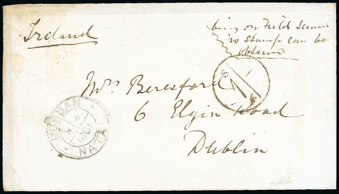 1881 (11 Apr.) unstamped Officer's envelope ex the Beresford correspondence to Dublin, marked "being on Field Service, no stamps can be obtained", showing circular-framed
