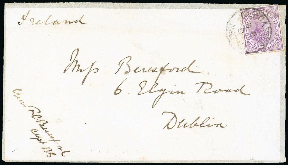 1881 (8 Aug.) Officer's envelope ex the Beresford correspondence, bearing Natal 6d. tied by