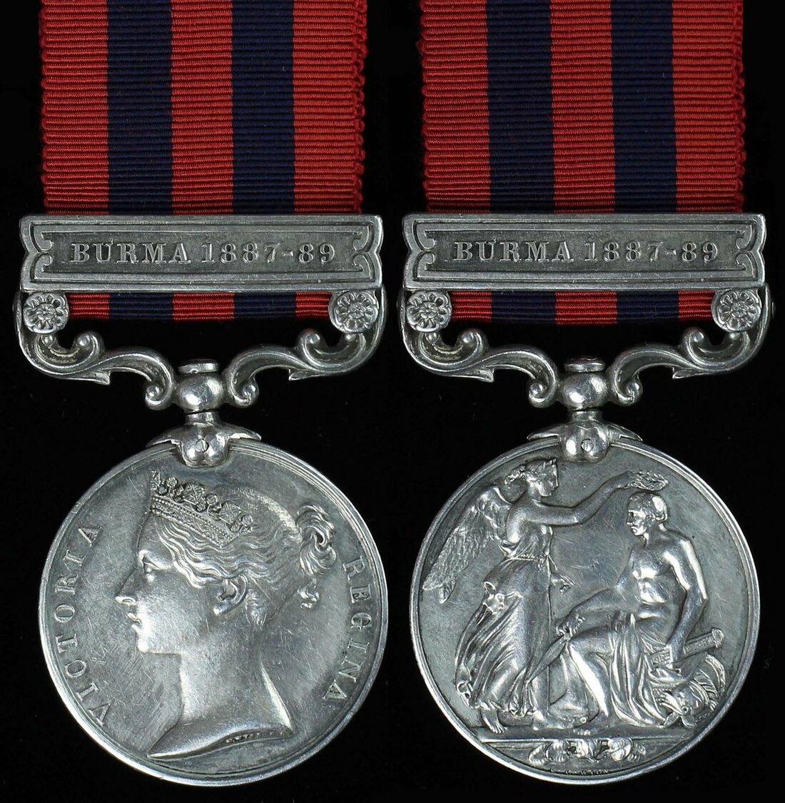 India General Service 1854-95, 1 clasp, Burma 1887-89 (1185 Pte. E. J. Paine 1st Bn. Hamps. R.), very fine