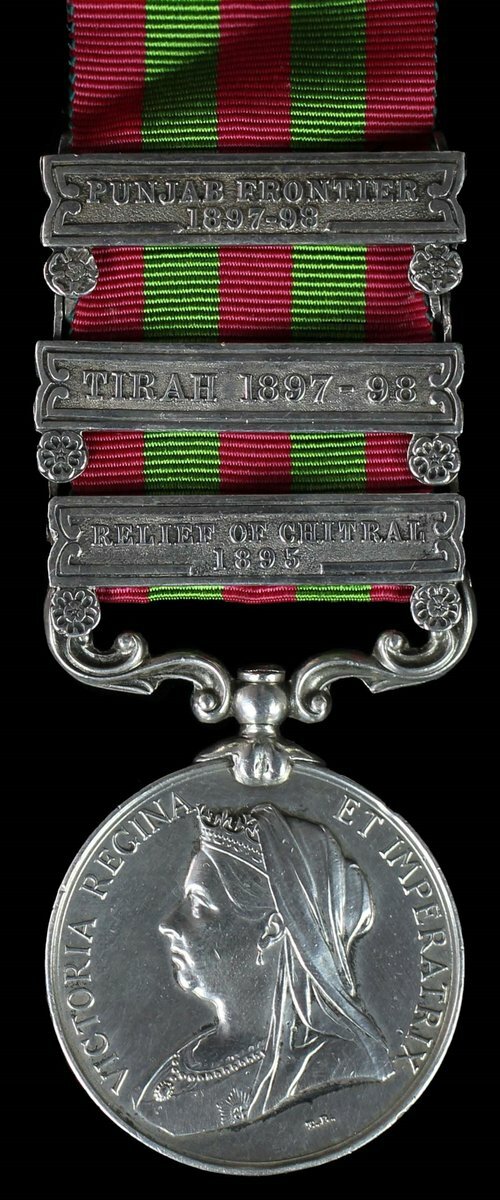 (x) India General Service 1895-1908, 3 clasps, Relief of Chitral 1895, Tirah 1897-98, Punjab Frontier 1897-98 (4382 Pte. H. H. Alderson. 1st. Bn. Gord Highrs.), unofficial rivets between clasps, very fine