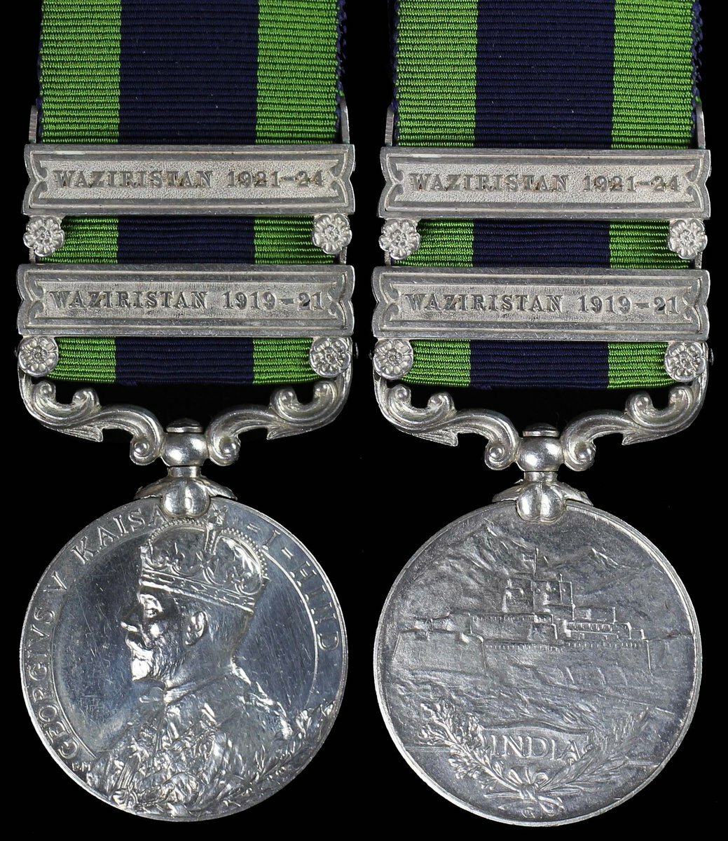 India General Service 1908-35, 2 clasps, Waziristan 1919-21, Waziristan 1921-24 (6077050 Pte. A. Kemp, The Queen's R.), very fine