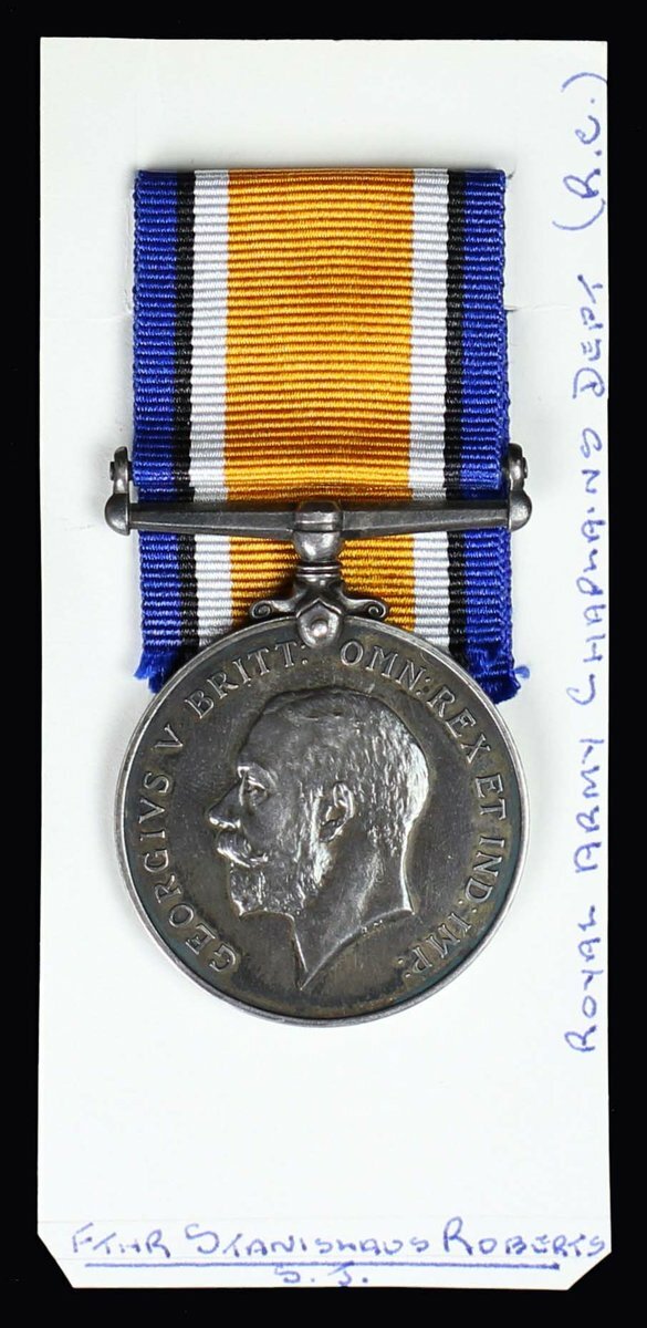 Stanislaws Roberts was commissioned as an Army Chaplain on 27 March 1917, entering the war in France on 28 March of that year. At the end of the war he gave his address as R/C Church 28 Lauriston St. Edinburgh, later appearing in the Catholic Directory 1924; sold together with handwritten research.