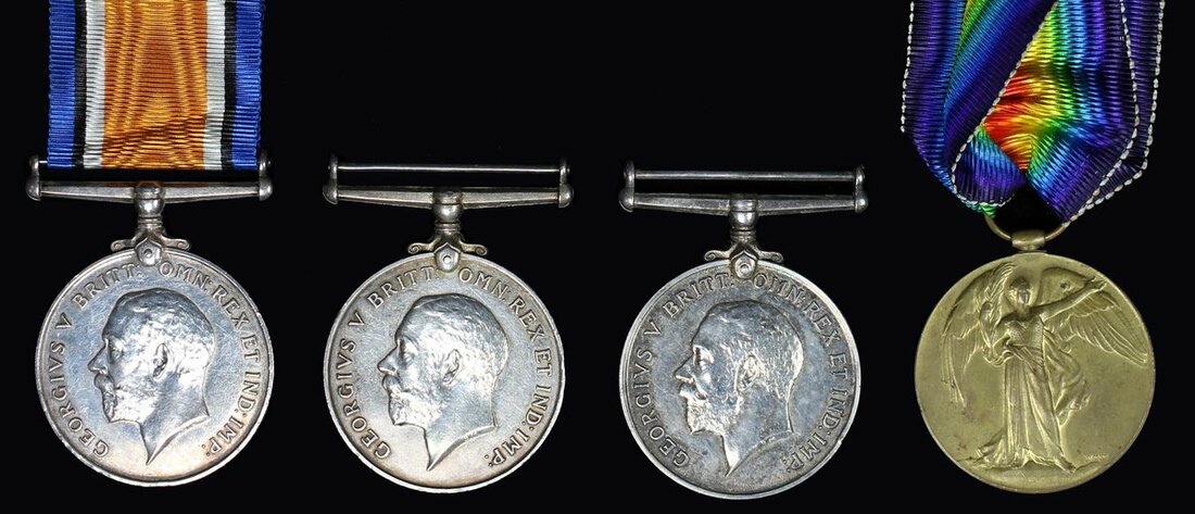 British War Medal 1914-20 (3) (4-1231 Pte. W. Clark. North'd Fus.; 5598 Pte. F. W. Kirk. North'd Fus.; 162979 Gnr. G. Legg. R.A.); Victory Medal 1914-19 (887 Pte. W. G. Jordan. Kent Cyc. Bn.), very fine (4)