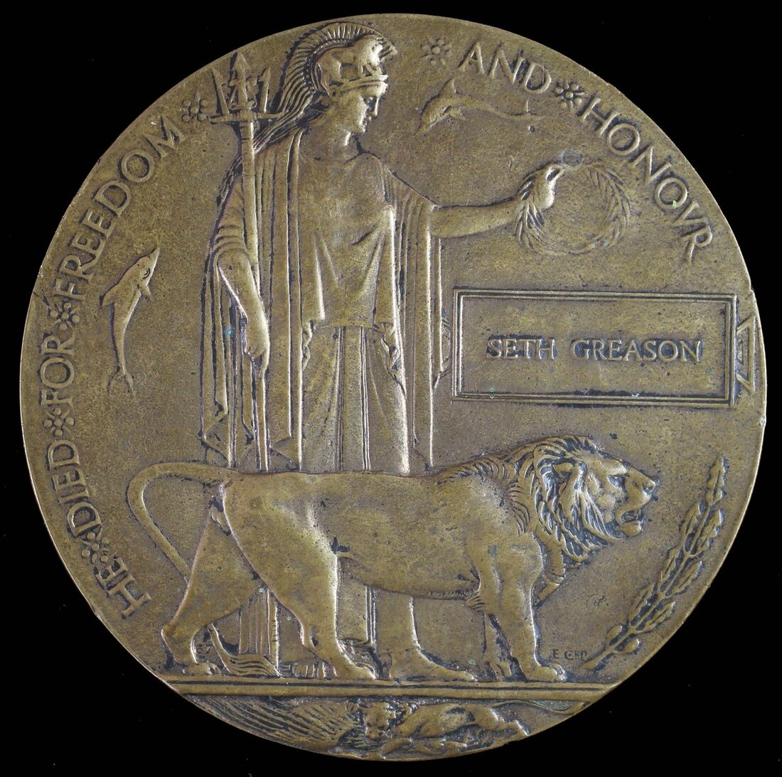 Great War Bronze Memorial Plaque (Seth Greason), edge bruising and contact marks, nearly very fine
