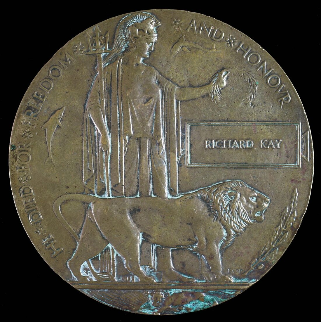 Great War Bronze Memorial Plaque (Richard Kay), edge bruising, contact marks, verdigris, good fine
