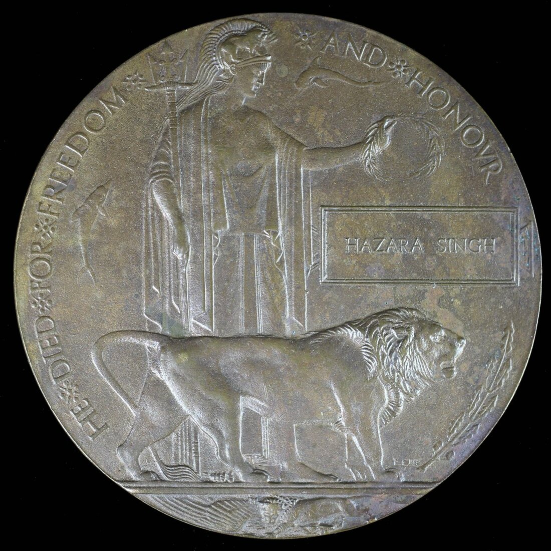 Great War Bronze Memorial Plaque (Hazara Singh), in card envelope and Buckingham Palace enclosure; India General Service 1936-39, 2 clasps, North West Frontier 1936-37, North West Frontier 1937-39 (11820 L-Naik Bahadru, 1-13 F. F. Rif.), very fine (2)