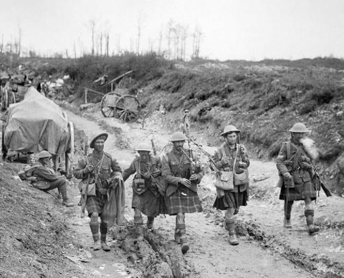 Taking part in the Somme Offensive the next year the Division's fighting around Longueval became so associated with them that the village was later chosen to play host to the Pipers' Memorial. Given little respite the division again fought during the Arras Offensive in 1917, taking part in both Battles of the Scarpe and later the First Battle of Passchendale before again being heavily engaged throughout 1918. Despite the intensity of the fighting Hattrick survived; having been promoted to Sergeant he was transferred firstly to the Machine Gun Corps and later to the Reserve on 24 February 1919.