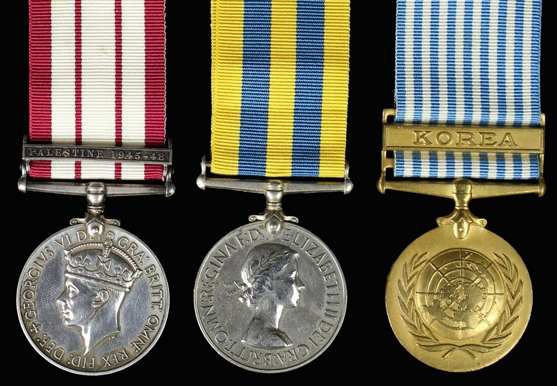 Naval General Service 1915-62, 1 clasp, Palestine 1945-48 (P/SSX 761838 T. J. G. Kay A.B. R.N.); Korea 1950-53 (P/SSX.761838 T. J. G. Kay. A.B. R.N.); U.N. Korea 1950-54, very fine (3)
