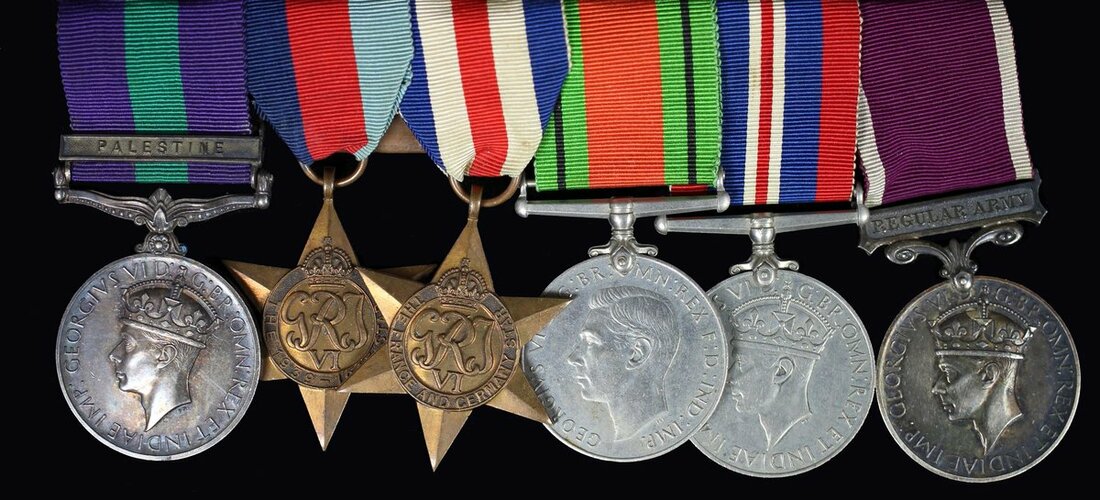 General Service 1918-62, 1 clasp, Palestine (1868051 Spr. A. L. Martin. R.E.); 1939-45 Star; France & Germany Star; Defence and War Medals 1939-45; Army L.S. & G.C., G.VI.R., Regular Army (1868051 Sjt. A. L. Martin. R.E.), mounted as worn, good very fine (6)