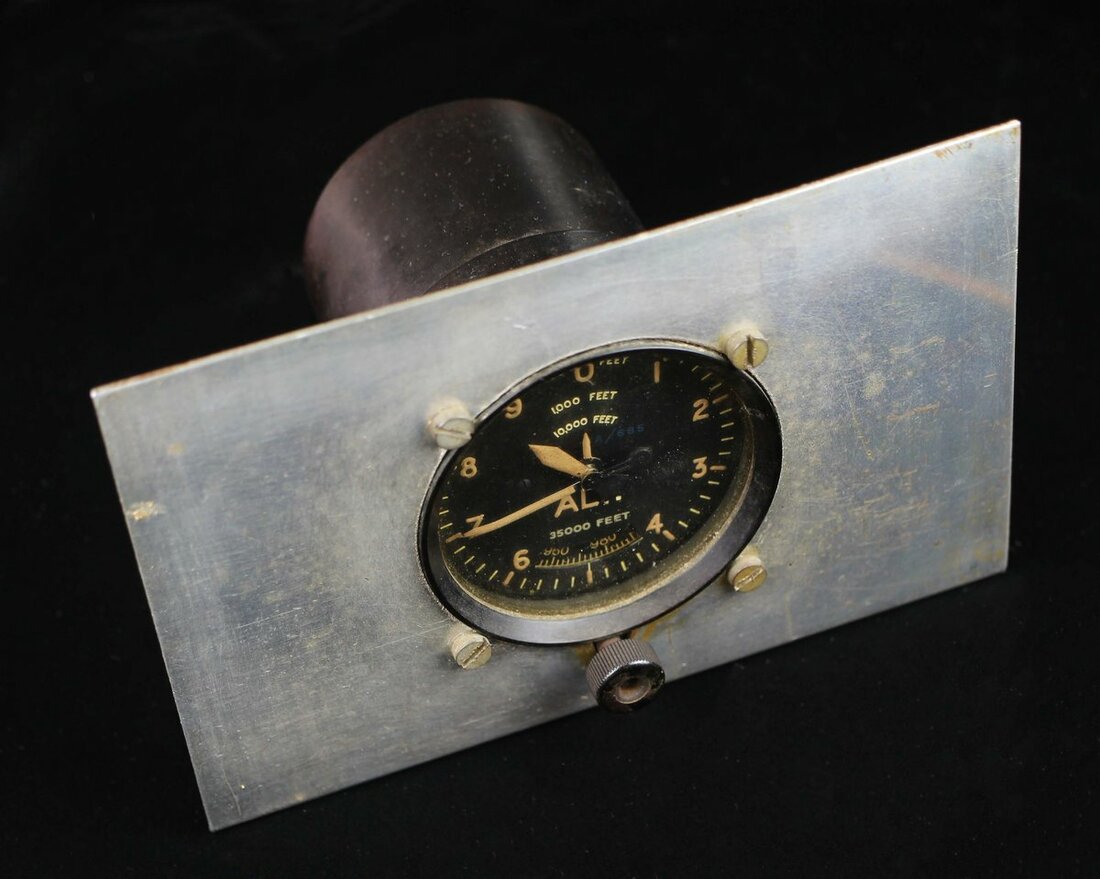 Second World War period RAF Flying Instrument with fittings for fixing to cockpit, with altimeter panel, with goverment broad arrow stamp to reverse, very fine