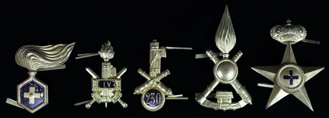 A selection of Italian Cap Badges, of Second World War period (5), very fine (5)
