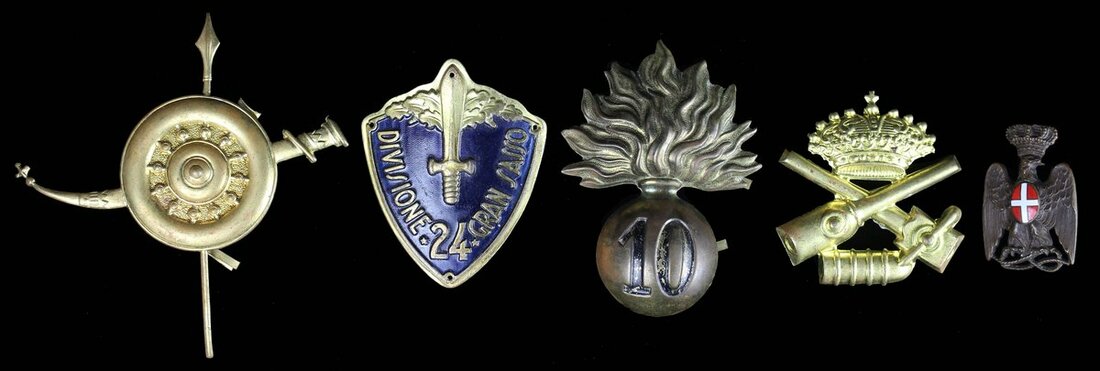 A selection of Italian Cap Badges, of Second World War period (5), very fine (5)