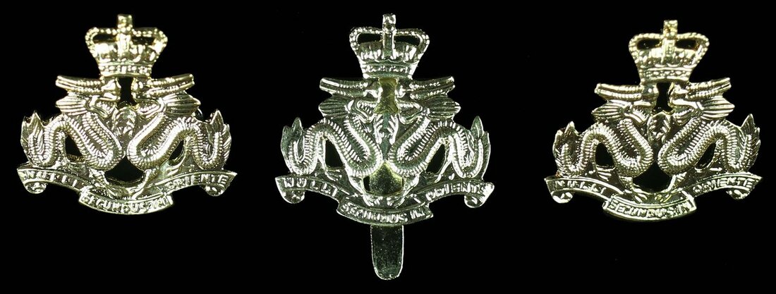 Set of Badges for the Royal Hong Kong Regiment, comprising two shoulder Badges and Cap Badge, manufactured just prior to their disbandment, nearly extremely fine (3)