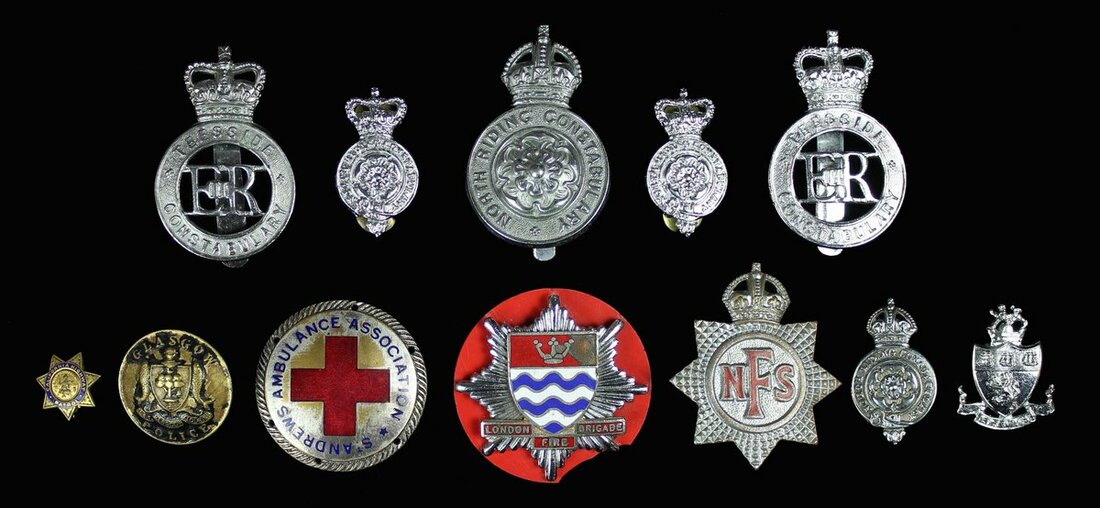 Including Glasgow Police badge; North Riding Constabulary badge (4); Teeside Constabulary badge (2); California Highway Patrol badge; London Fire Brigade badge; St Andrews Ambulance Association, generally very fine (Lot)