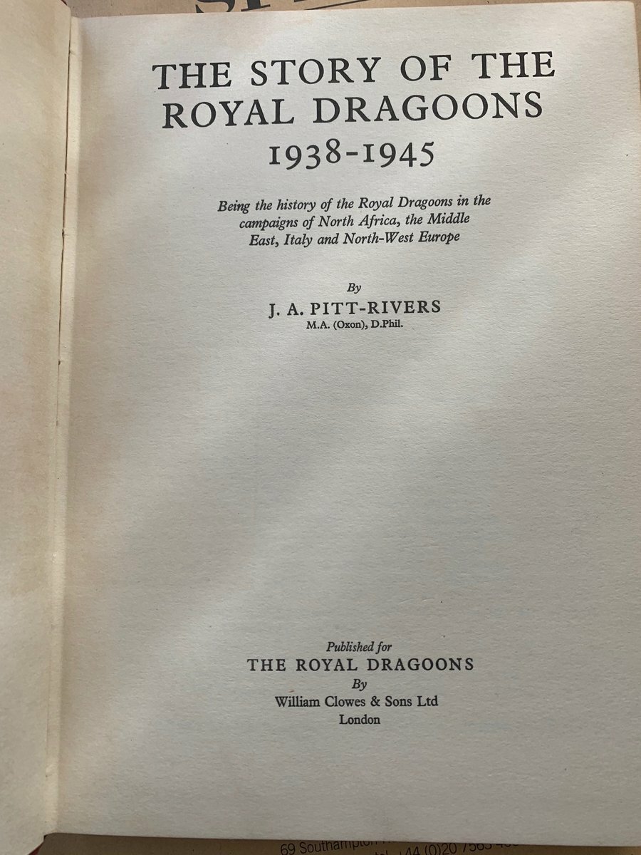 Books; The Story of the Royal Dragoons 1938-1945, by J. A. Pitt-Rivers, published by Clowes & Sons, London, very fine