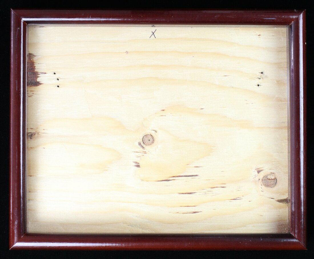 Wooden case under glass, interior unvarnished, reverse with Spink&Son name plate; Wooden case under glass with rear mounted stand, hook latch and velvet interior, both worn, nearly very fine (2)