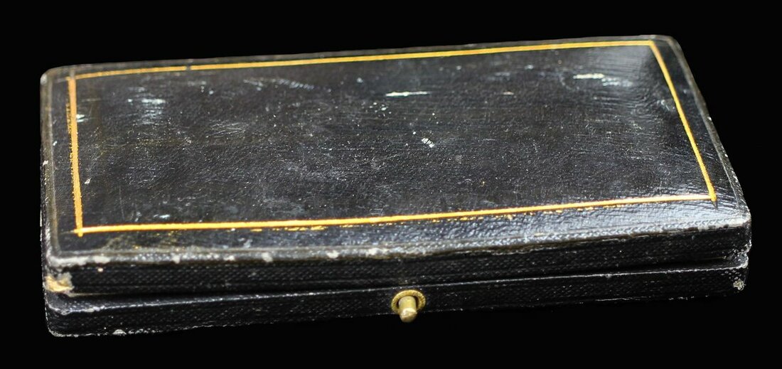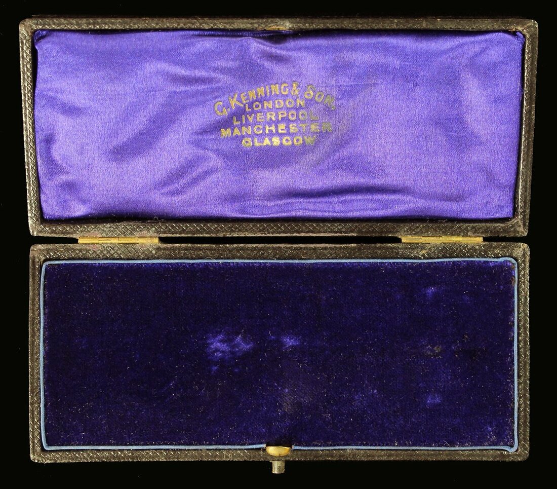Case for mounted medal group, 214mm x 128mm; case of issue, 118mm x 69mm; case of issue, 133mm x 59mm by G. Kennington & Son; case of issue, 128mm x 64mm, first nearly extremely fine otherwise overall worn and hinges of fourth warped, nearly very fine (4)