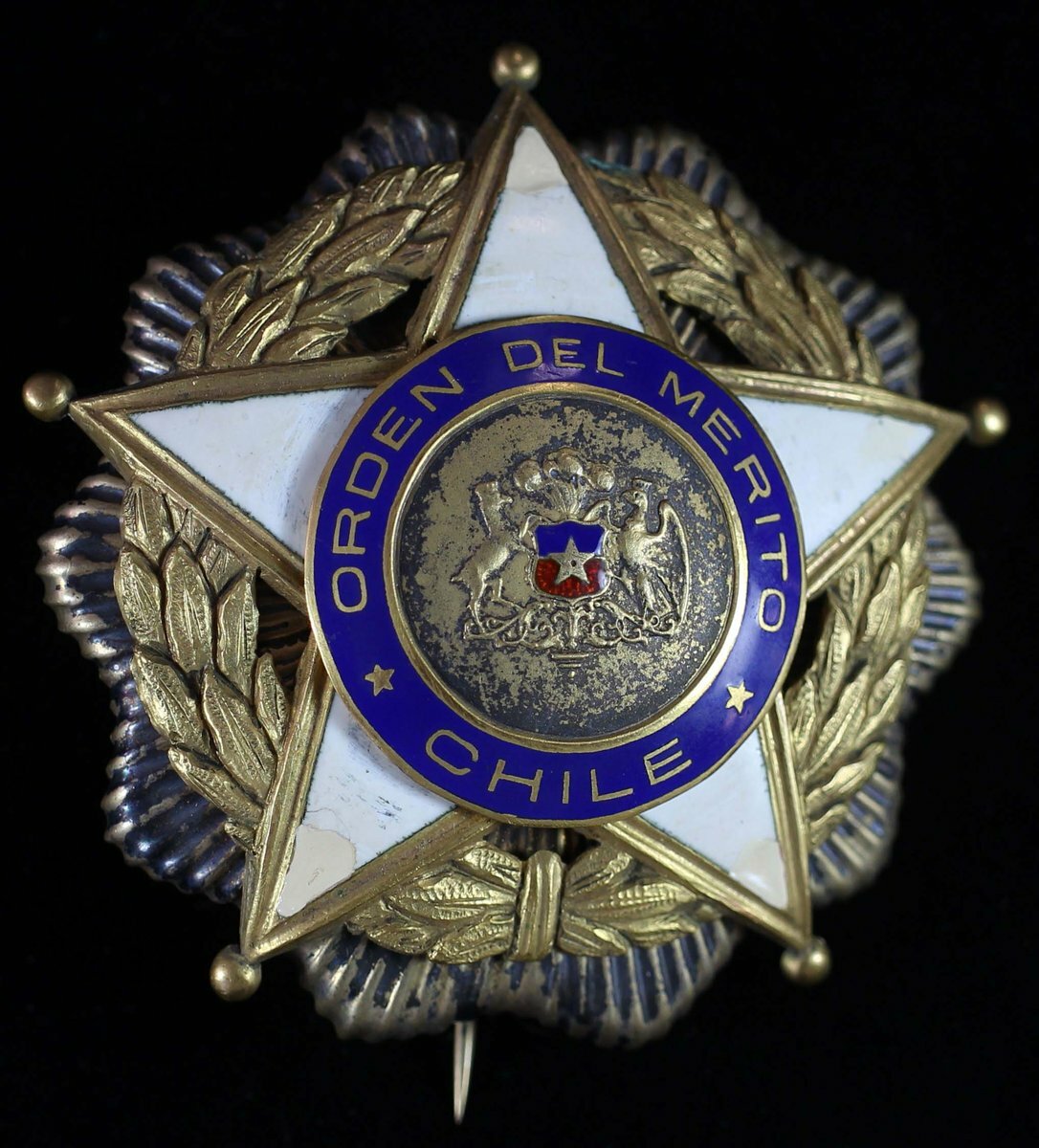 (x) Chile, Republic, Order of Merit, Star, 80mm, silver-gilt, gilt and enamel, centre rather loose, nearly very fine