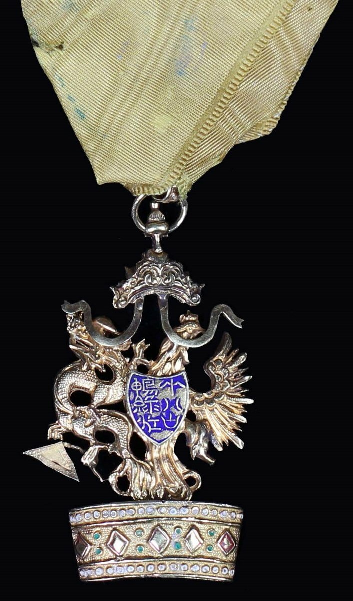 The Badge produced from an adapted Badge of the Austrian Order of the Iron Crown. Perhaps produced as a membership Badge for a group of European Nobles living in the Far East.