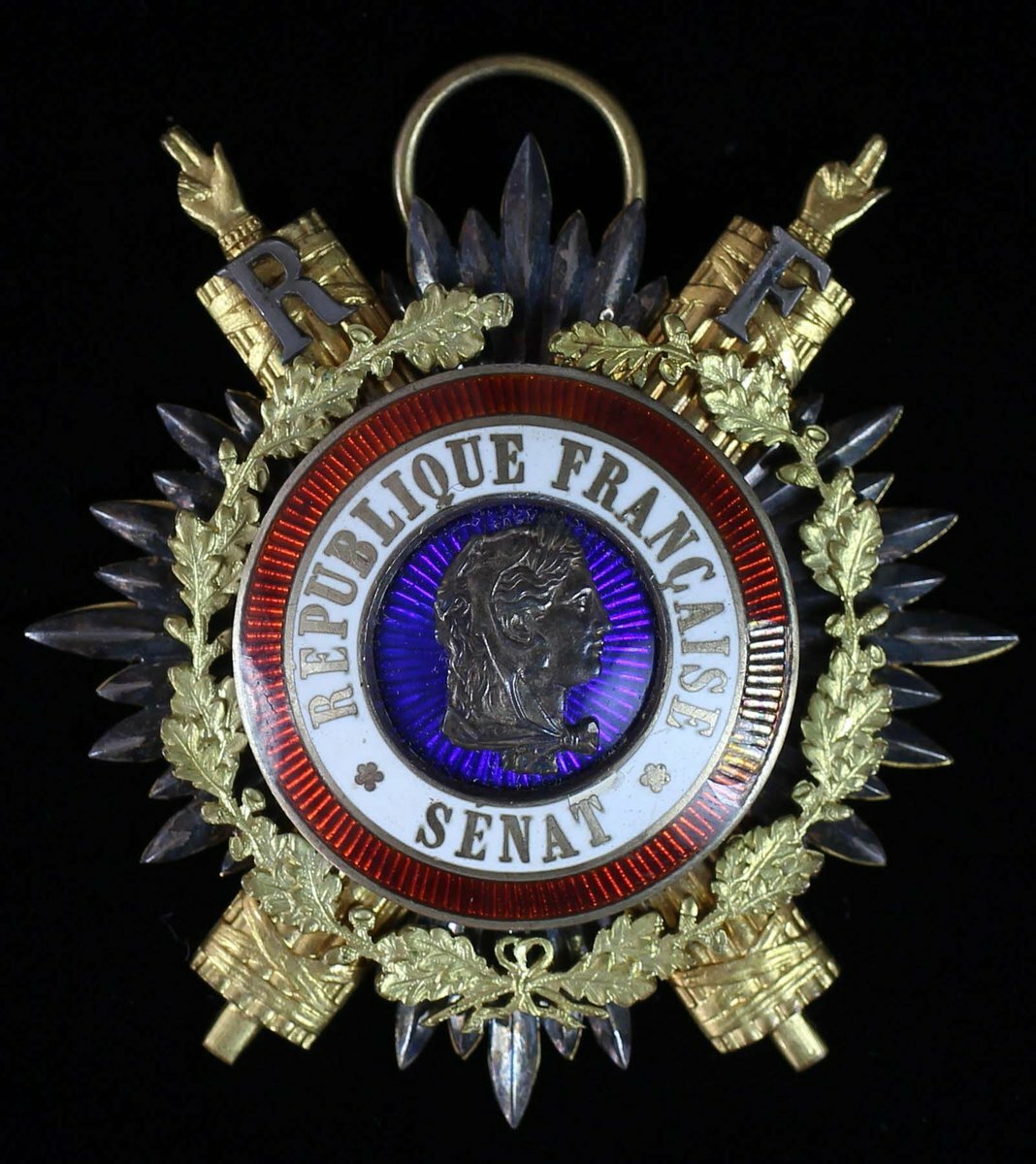 (x) France, Republic, Senate Badge, 67mm, silver-gilt, gilt, silver and enamel, enamel chipping and loss, nearly very fine