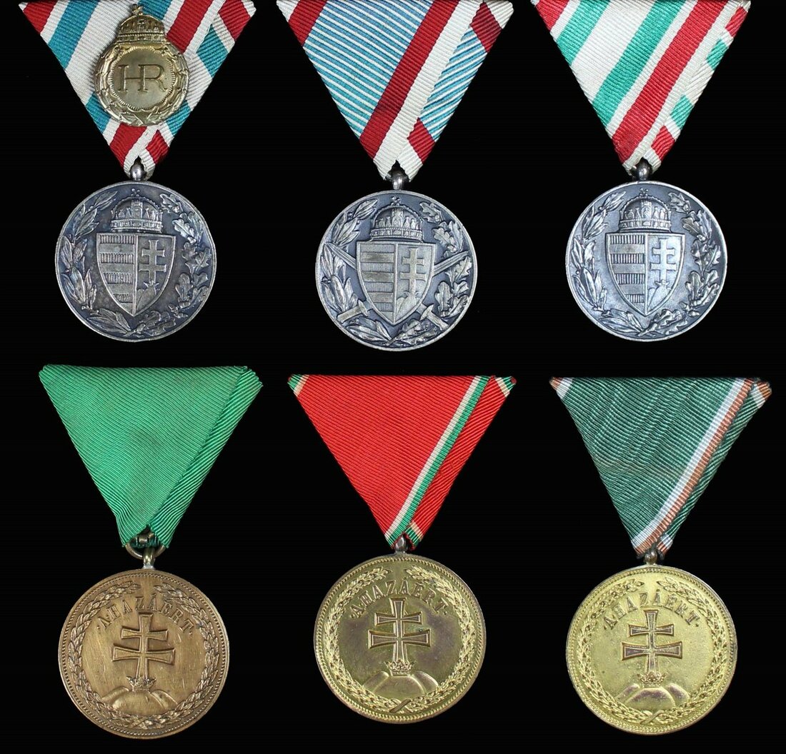 Hungary, Order of Military Merit, Medal, bronze grade (3); 1914-18 Commemorative Medal (3), one with devices upon riband, very fine, all mounted as worn (6)