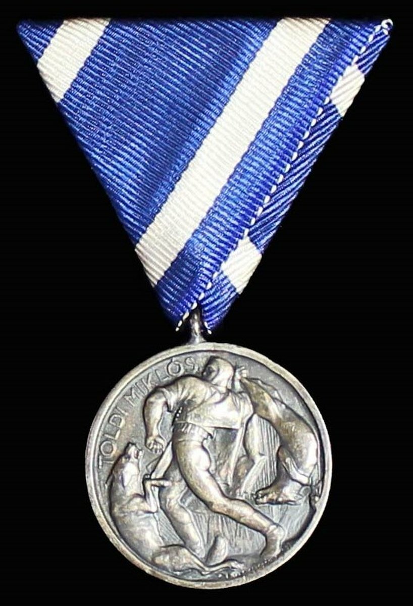 Miklós Horthy de Nagybánya was Regent of the Kingdom of Hungary. The Medal was awarded in his name for sports performance and as such could be awarded to both military and civilian personnel. It was established on 25 June 1936, just before the 1936 Berlin Olympics in Berlin. From 1936-45, it was conferred just 111 times, of which 44 Silver Medals were bestowed.
