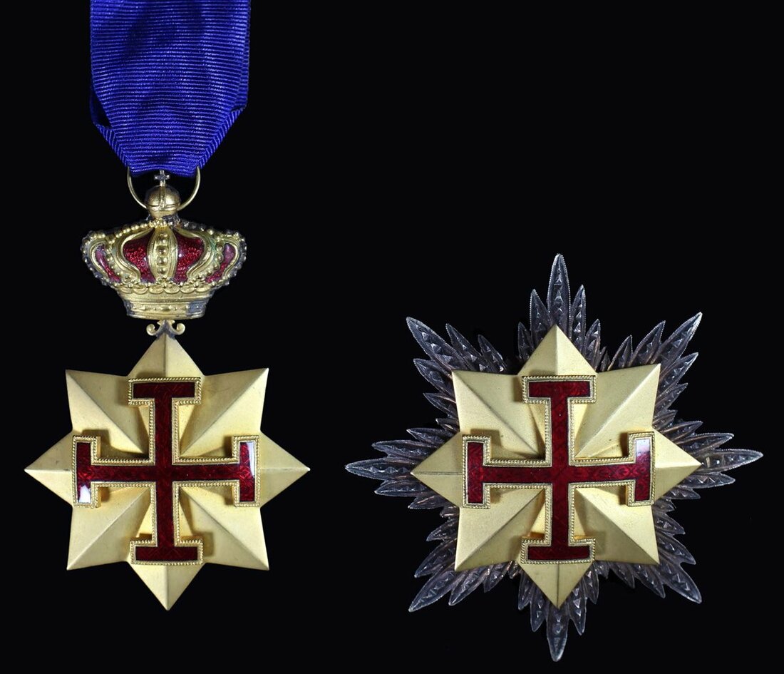 International, Order of St. George of Antioch, set of Insignia, comprising sash badge, 88mm including crown suspension x 57mm, gilt and enamel; Star, 83mm, silver, gilt and enamel, very fine (2)