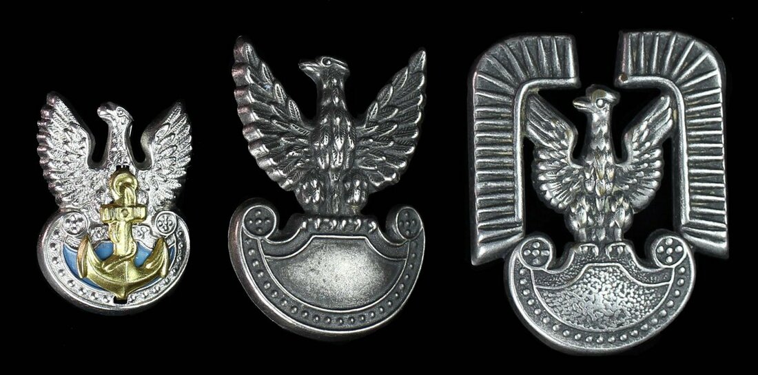 Poland, Republic, three Cap Badges, Free Polish Navy; Polish Army (2), all with two wire prongs to reverse, very fine (3)