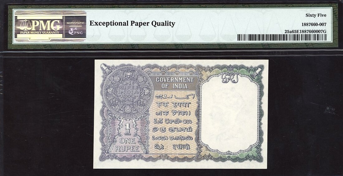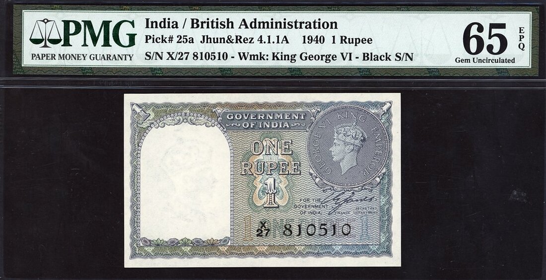 (x) Government of India, 1 rupee, ND (1940), prefix X/27, (Pick 25a, Razack-Jhunjhunwalla 4.1.1A), in PMG holder 67 EPQ
