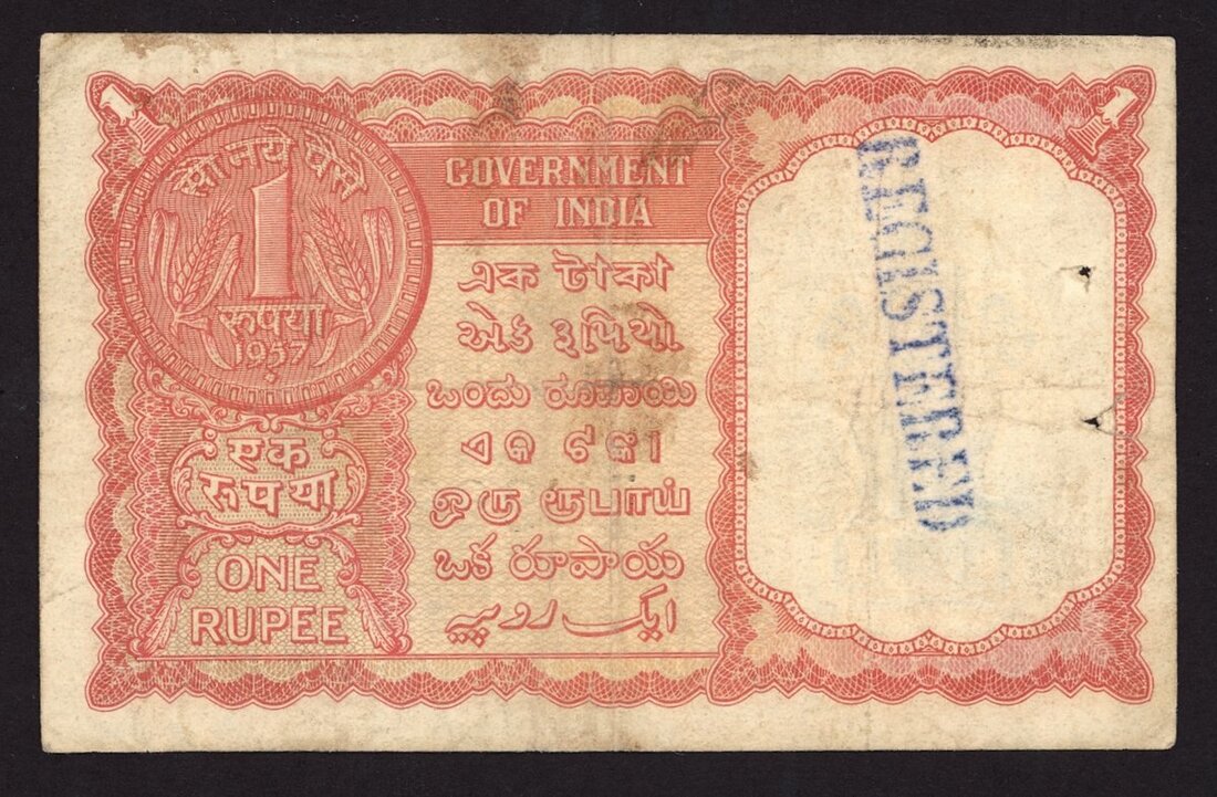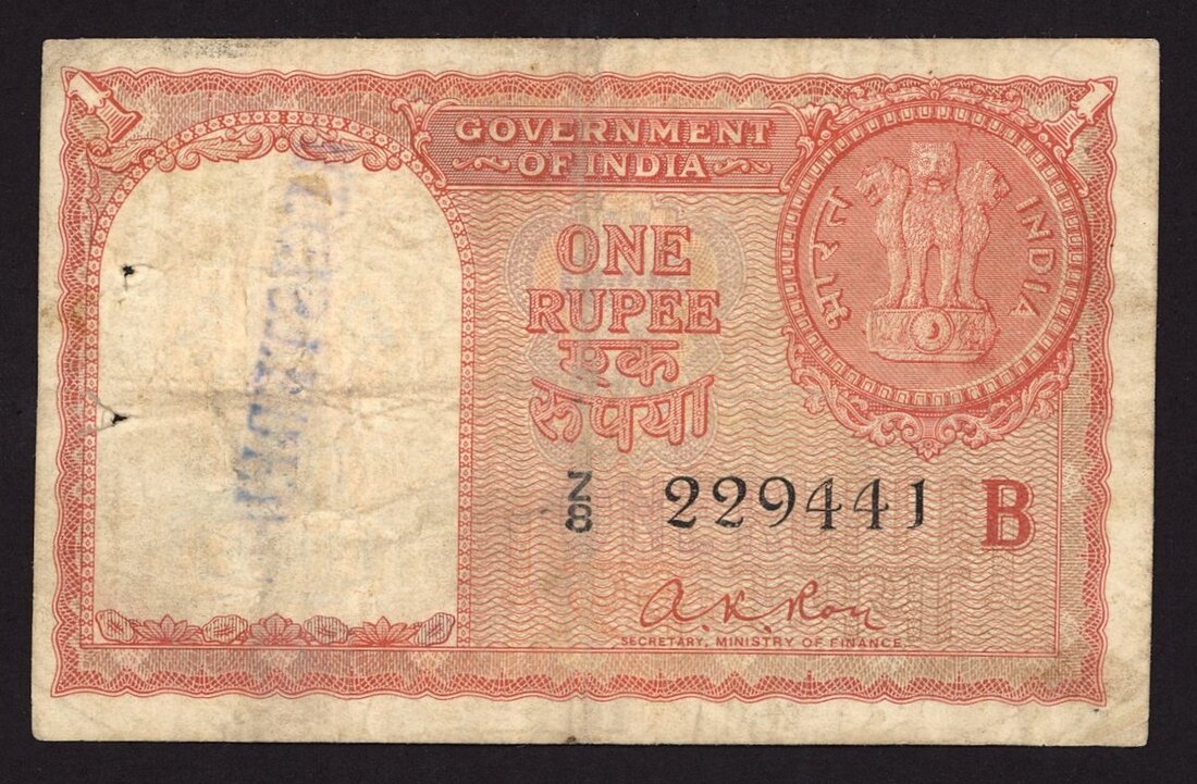 (x) Persian Gulf issue, India Reserve Bank, 1 rupee, ND (1950's), prefix Z/8, red, Ashoka column at right, Roy signatures respectively