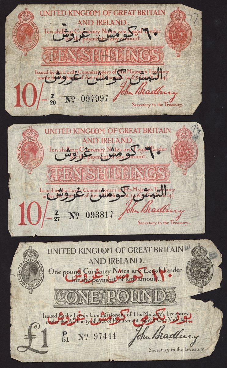 Treasury Series, John Bradbury, Dardanelles Campaign Overprints, 10 shillings (2), £1, also three misc banknotes,