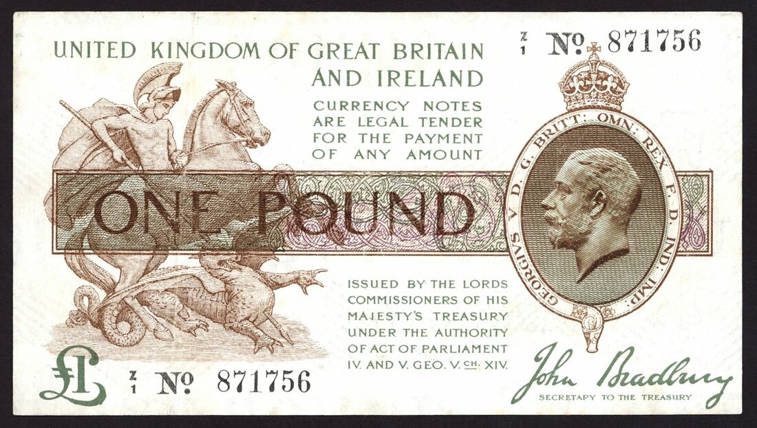 Treasury Series, John Bradbury, £1, ND (1917), serial number Z/1 871756, (EPM T16), control prefix, pressed, extremely fine