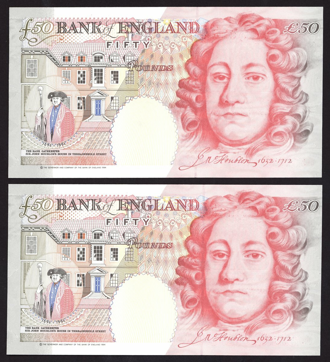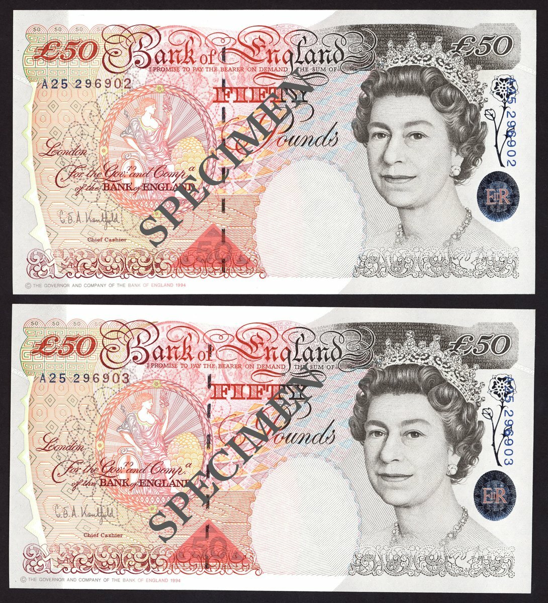 Bank of England, G.E.A. Kentfield, consecutive pair of £50, ND (1994), serial number A25 296902/03, (EPM B377), uncirculated (2 notes)