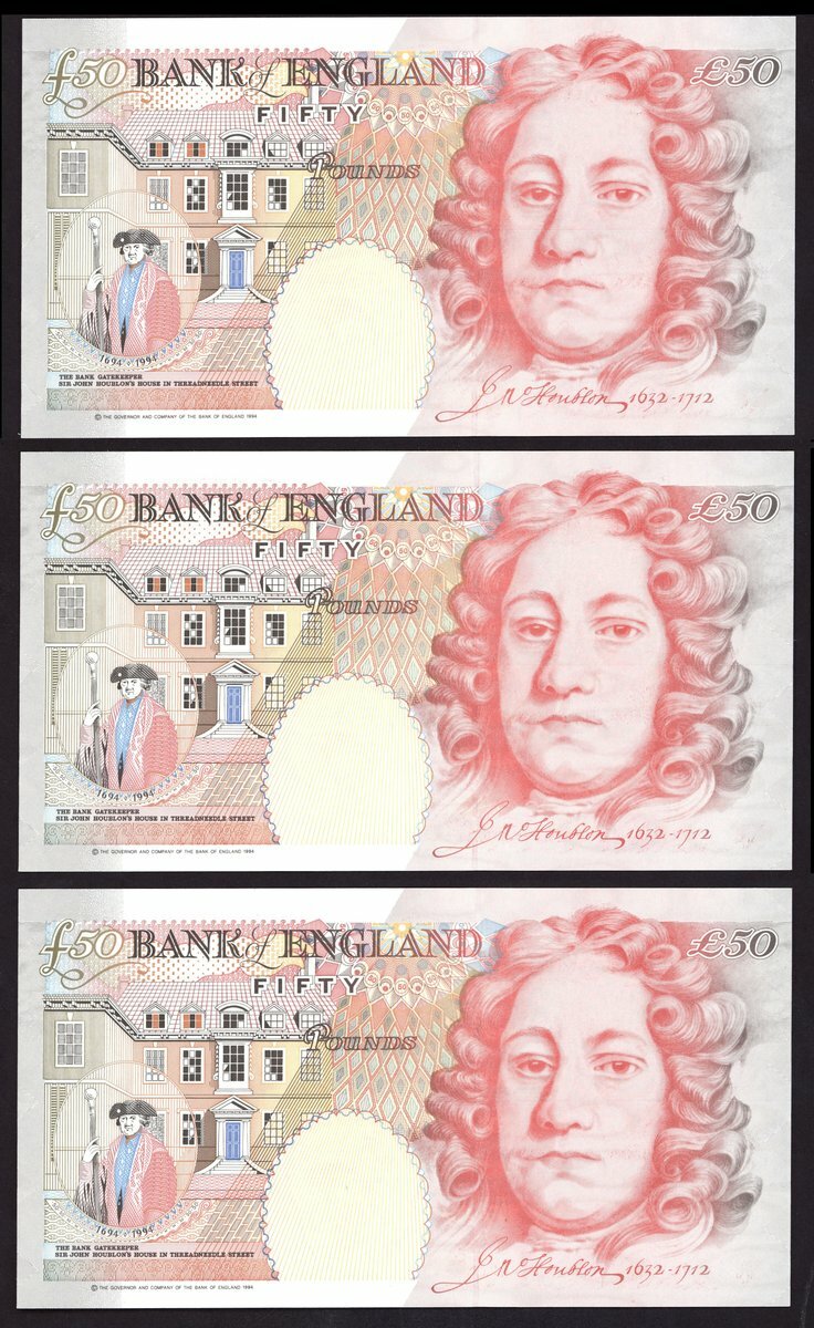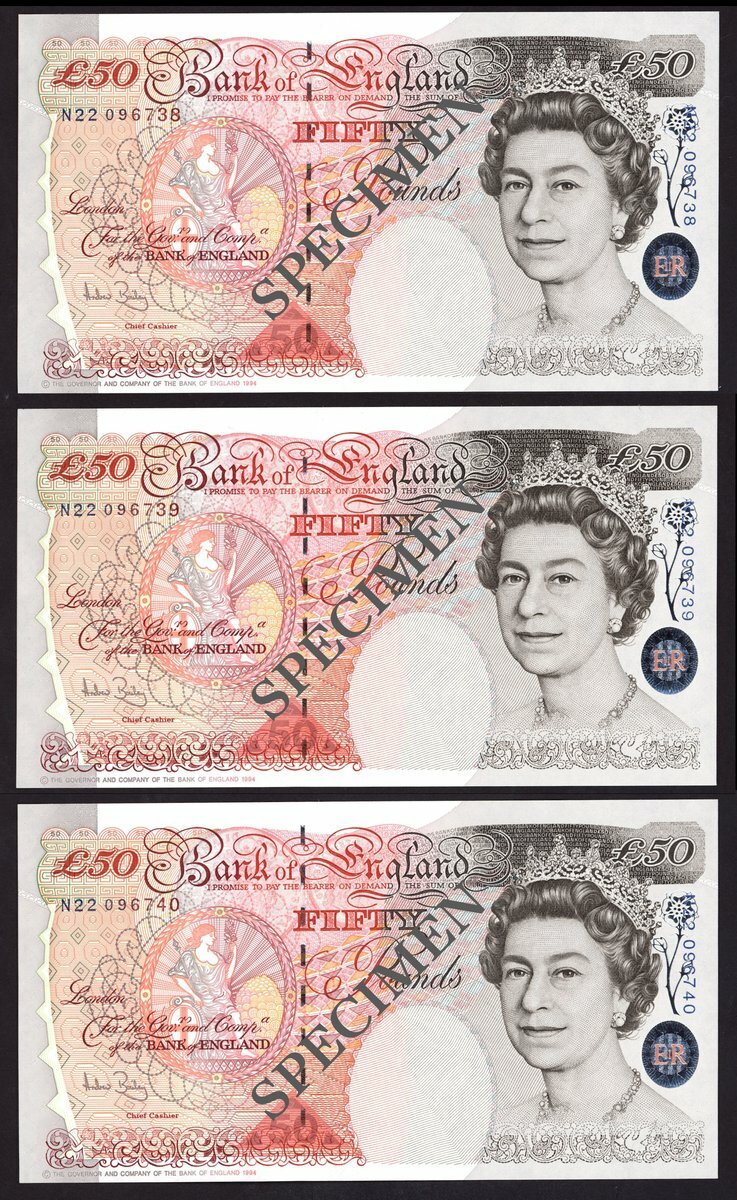 (x) Bank of England, A. Bailey, £50 (3), 1994, serial number N22 096738, 096739, 096740 (EPM B404) uncirculated, consecutive trio (3 notes)