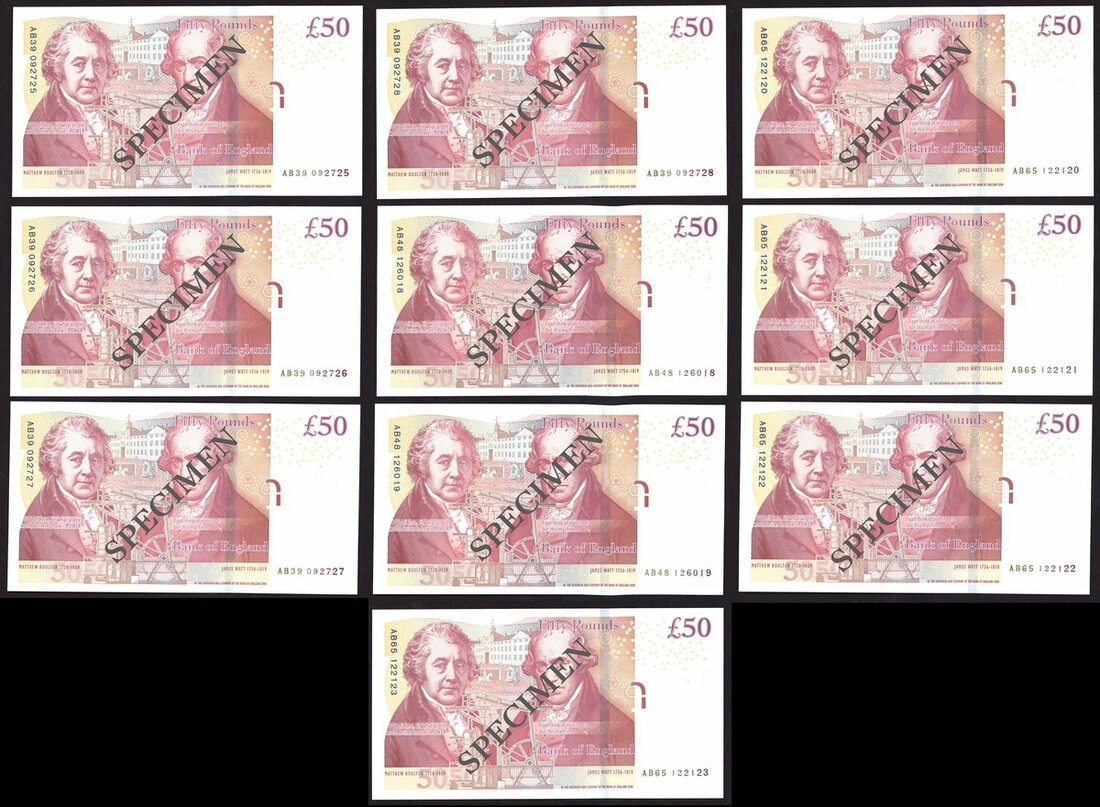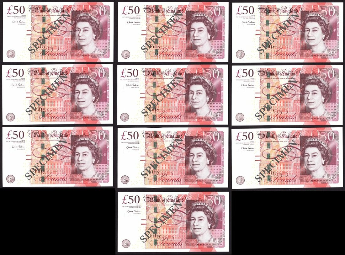 Bank of England, C. Salmon, a group of £50 (10), ND (2011), also includes a signed photograph of Chris Salmon,