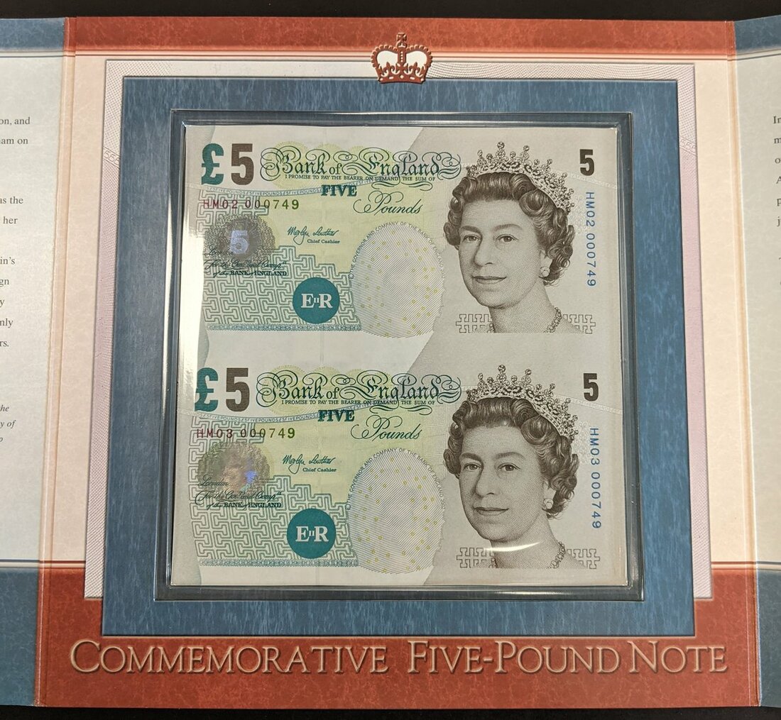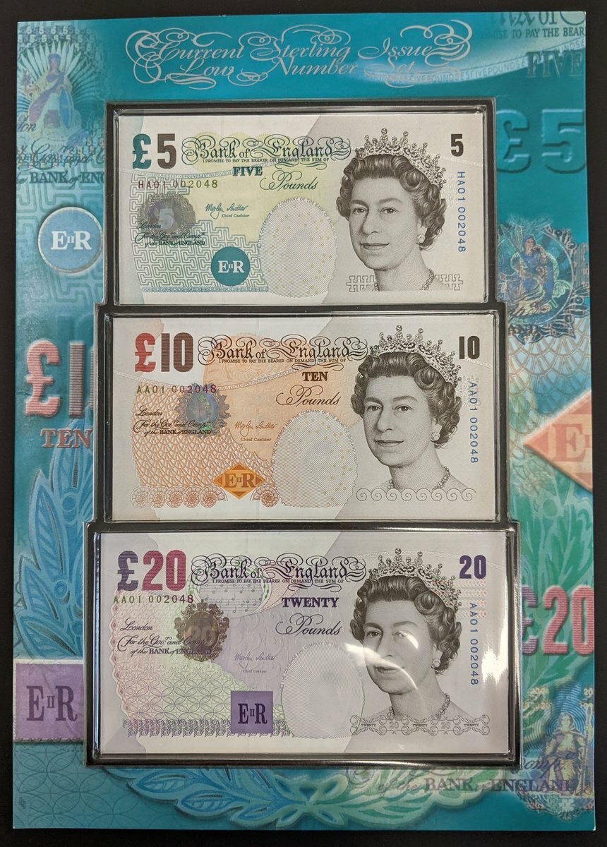 Debden Security Printing, Lowther issues comprised of, £5 (3) £5 sheet of 2, £10, £20