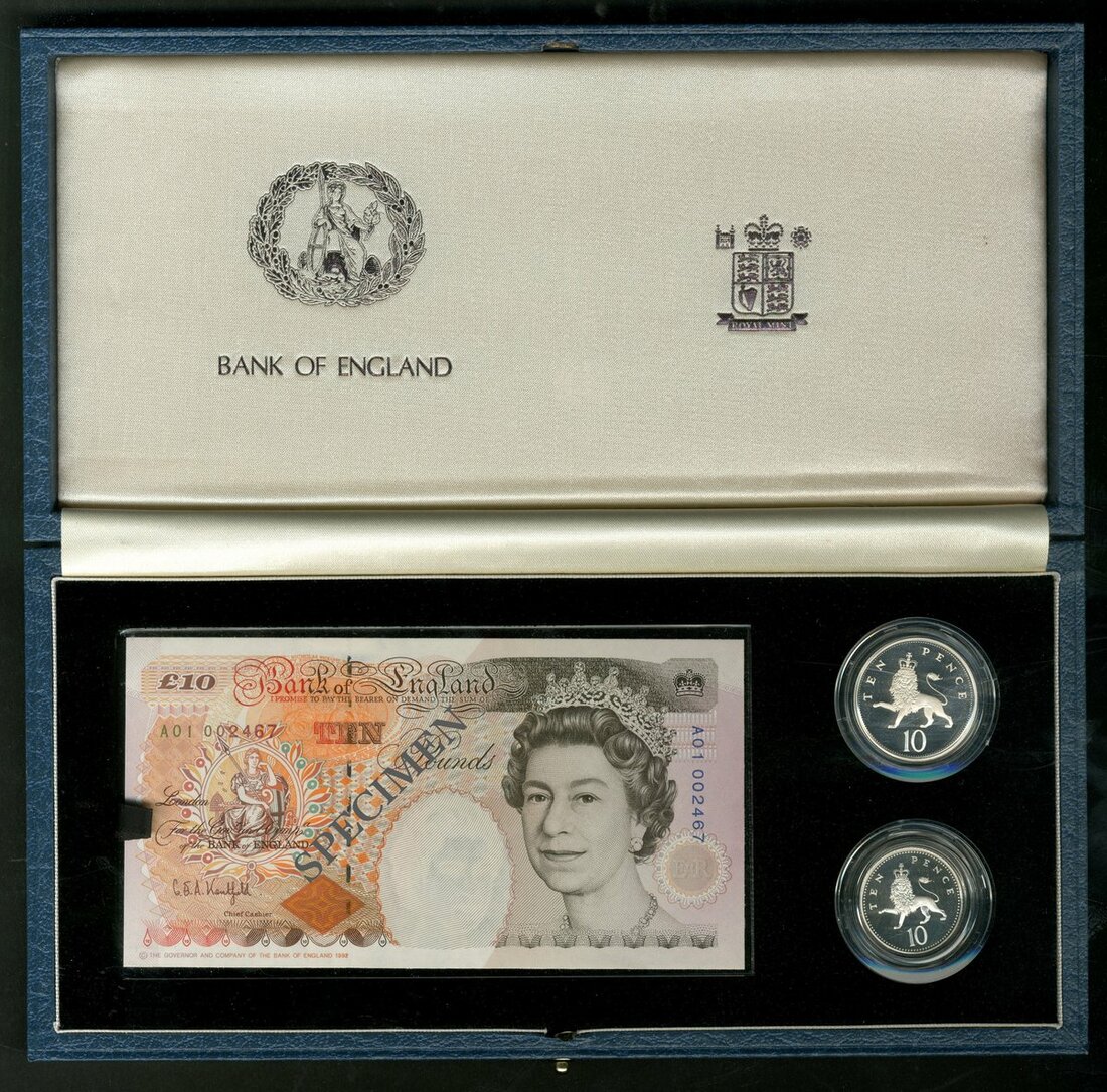 Bank of England, special commemorative issues 1992, £10 banknote and silver proof 10p two coin set