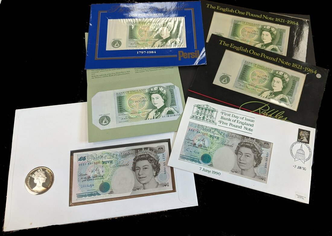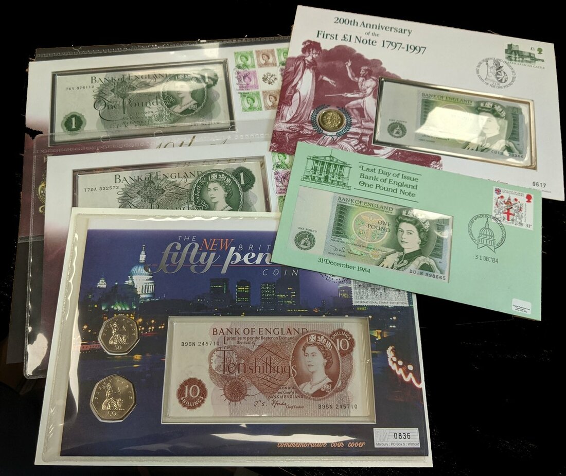 Bank of England, anniversary issues, 10/-, £1 (13), £5 (3), also including 9 coins
