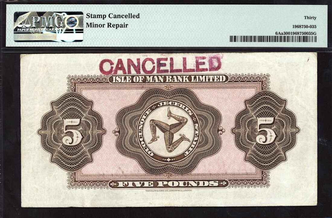 (IMPM M288a, Q305), in PMG holder, minor repair, 30 Very Fine, red handstamped 'CANCELLED' in maroon ink on lower obverse and upper reverse, being removed from circulation presumably as an official reference of type in the absence of a true specimen, consequently interesting and unusual, rare