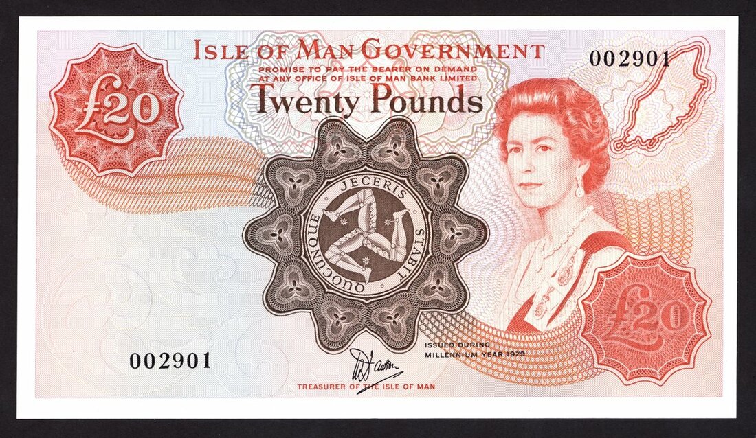 Isle of Man Government, £20, ND (1979), serial number 002901, signature Dawson,