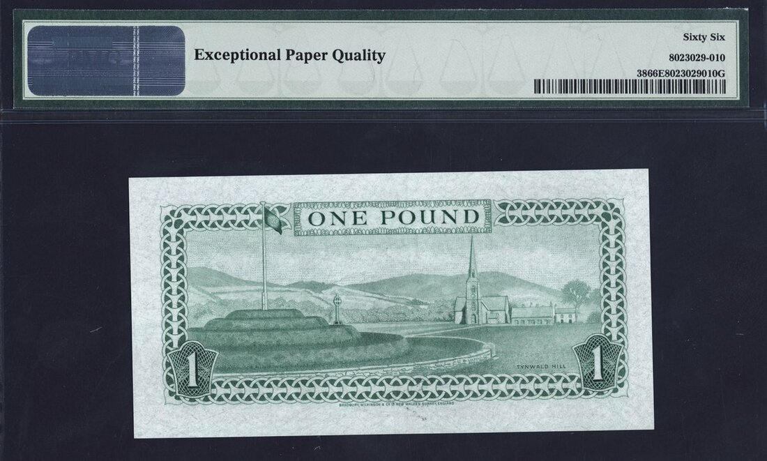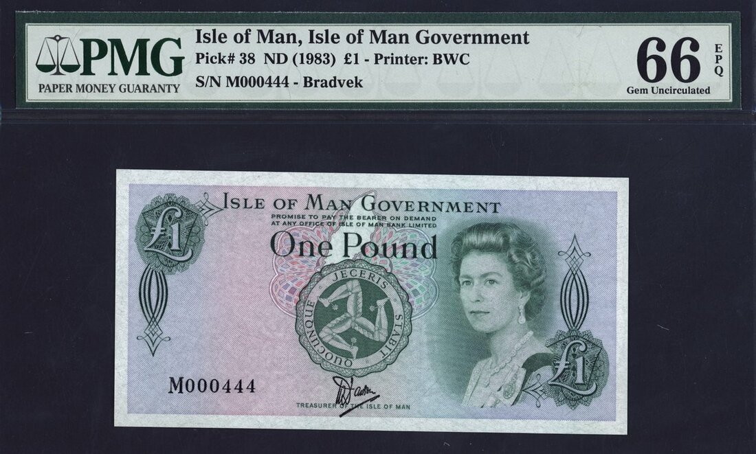(x) Isle of Man Government, £1, ND (1983), serial number M 000444, (Pick 38), low number first prefix, in PMG holder 66 EPQ Gem Uncirculated